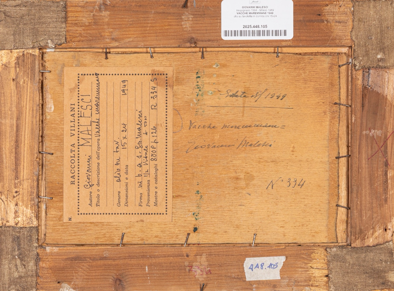 Provenienza: "Raccolta Villani" etichetta al retro con dettagli dell'opera.