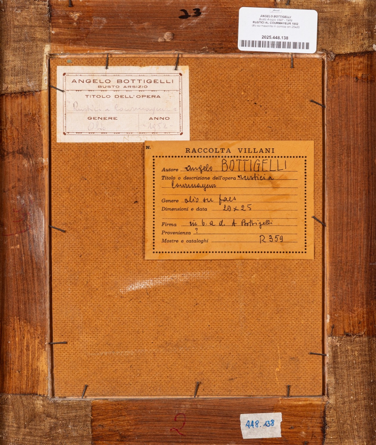 Provenienza: "Raccolta Villani" etichetta al retro con dettagli dell'opera.