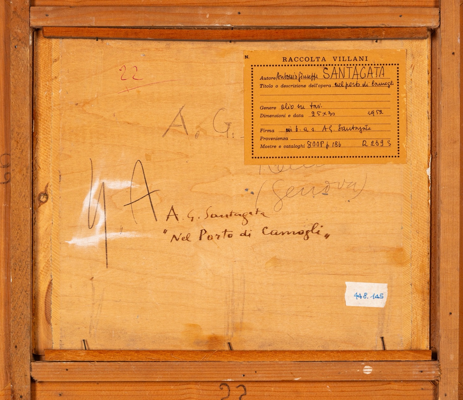 Provenienza: "Raccolta Villani" etichetta al retro con dettagli dell'opera.