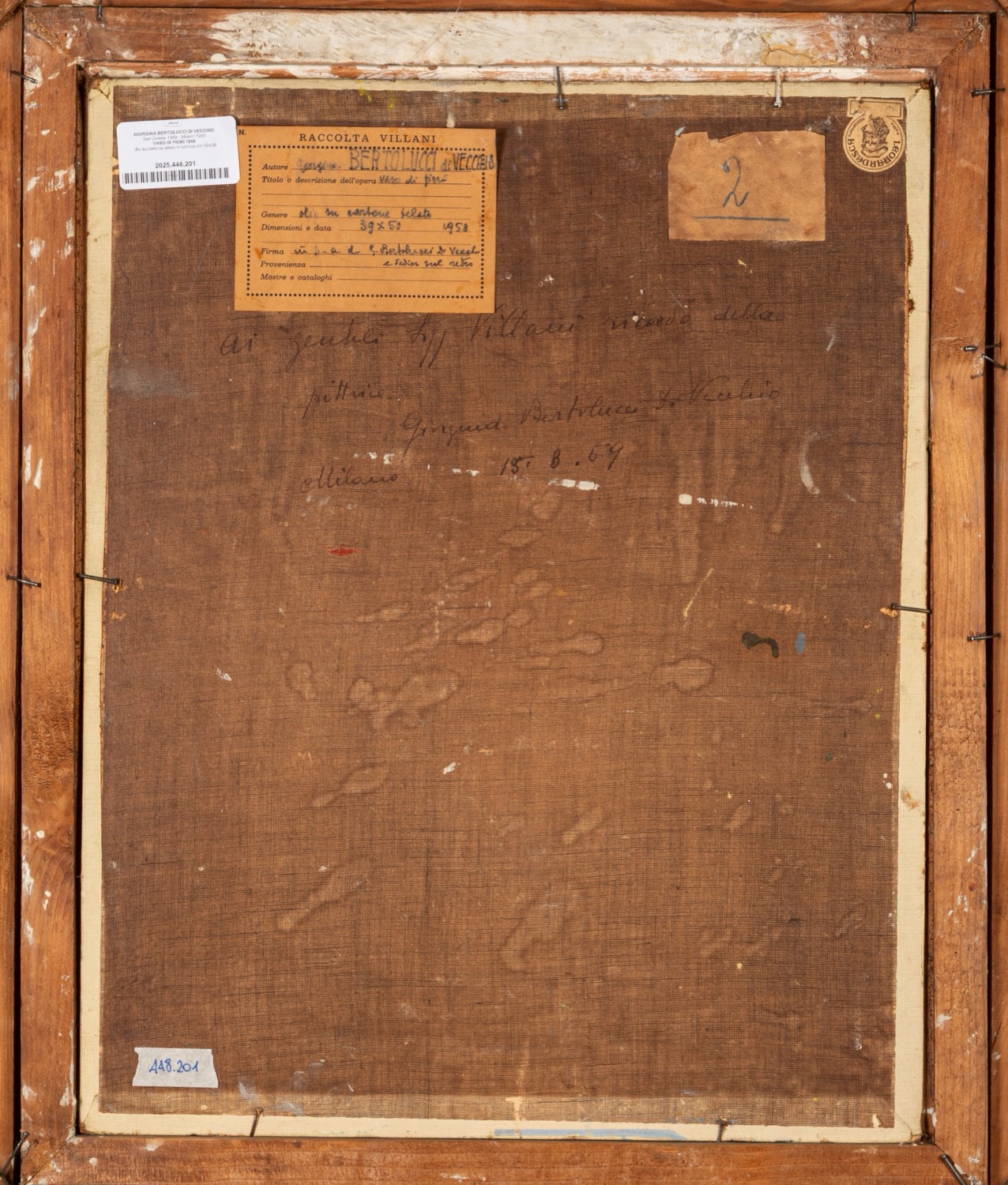 Provenienza: "Raccolta Villani" etichetta al retro con dettagli dell'opera.