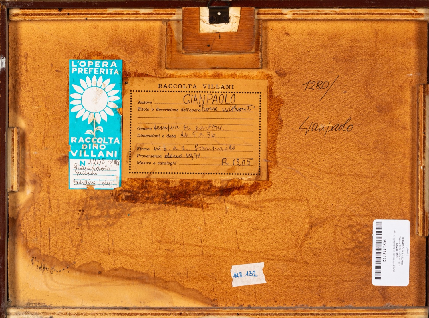 Provenienza: "Raccolta Villani" etichetta al retro con dettagli dell'opera.