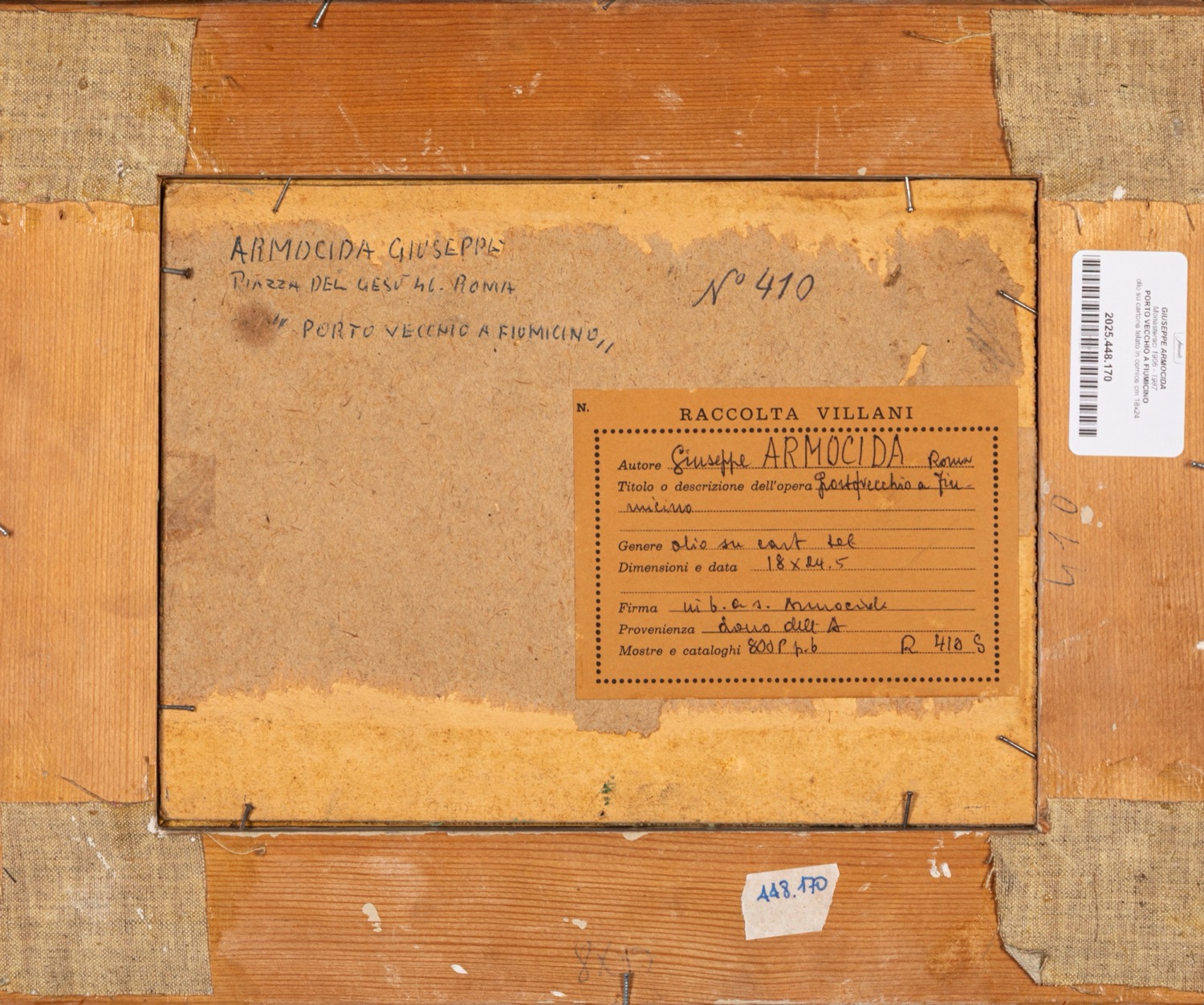 Provenienza: "Raccolta Villani" etichetta al retro con dettagli dell'opera.
