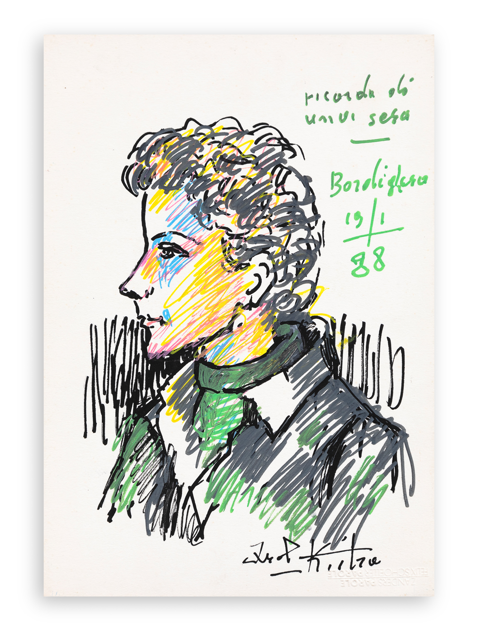 Firma, titolo, datazione e località (Bordighera) al fronte