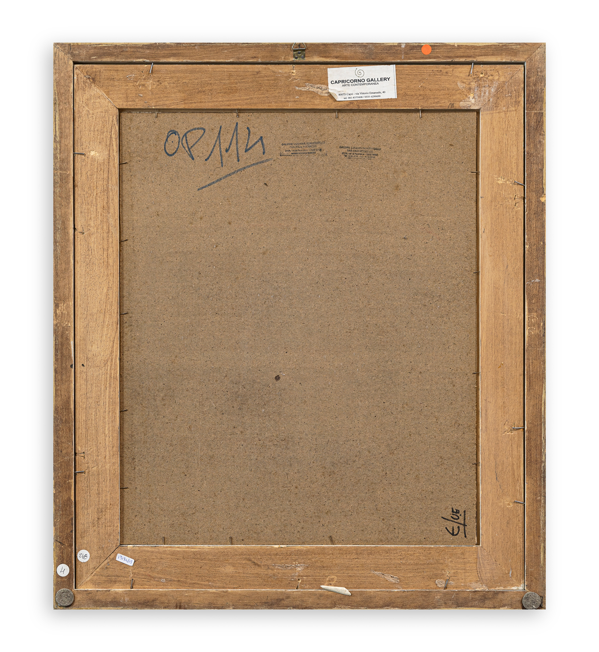 Etichetta della Galleria Capricorno - Capri al retro della tavola protettiva