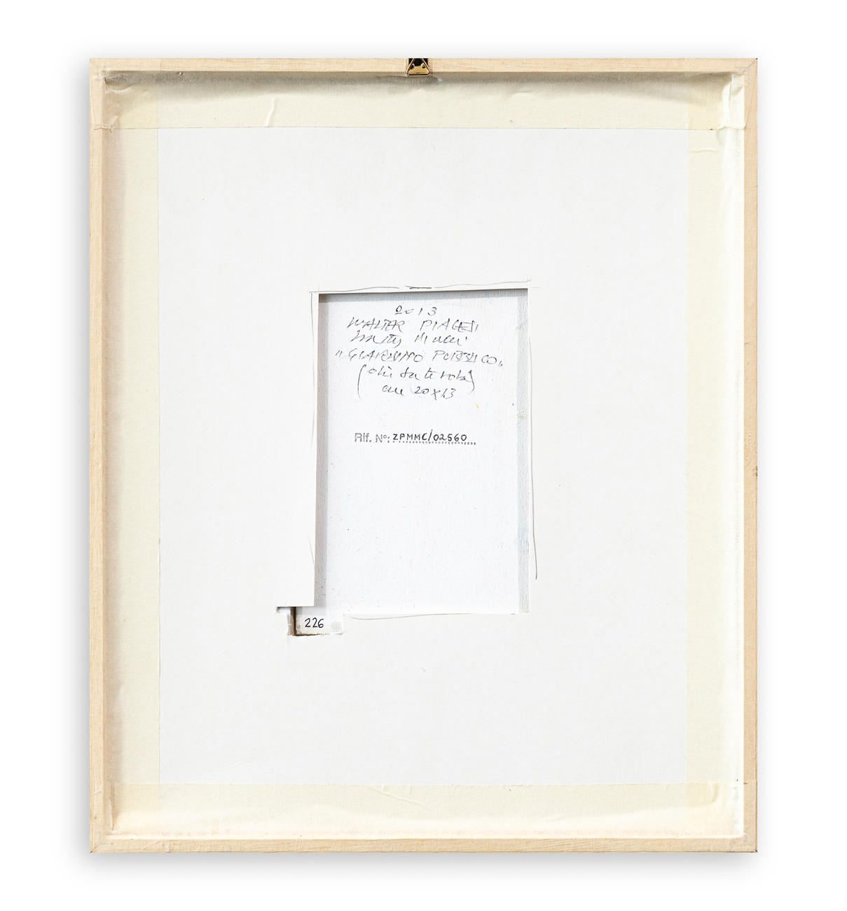 Firma, titolo, tecnica, misure e numero di Archivio al retro