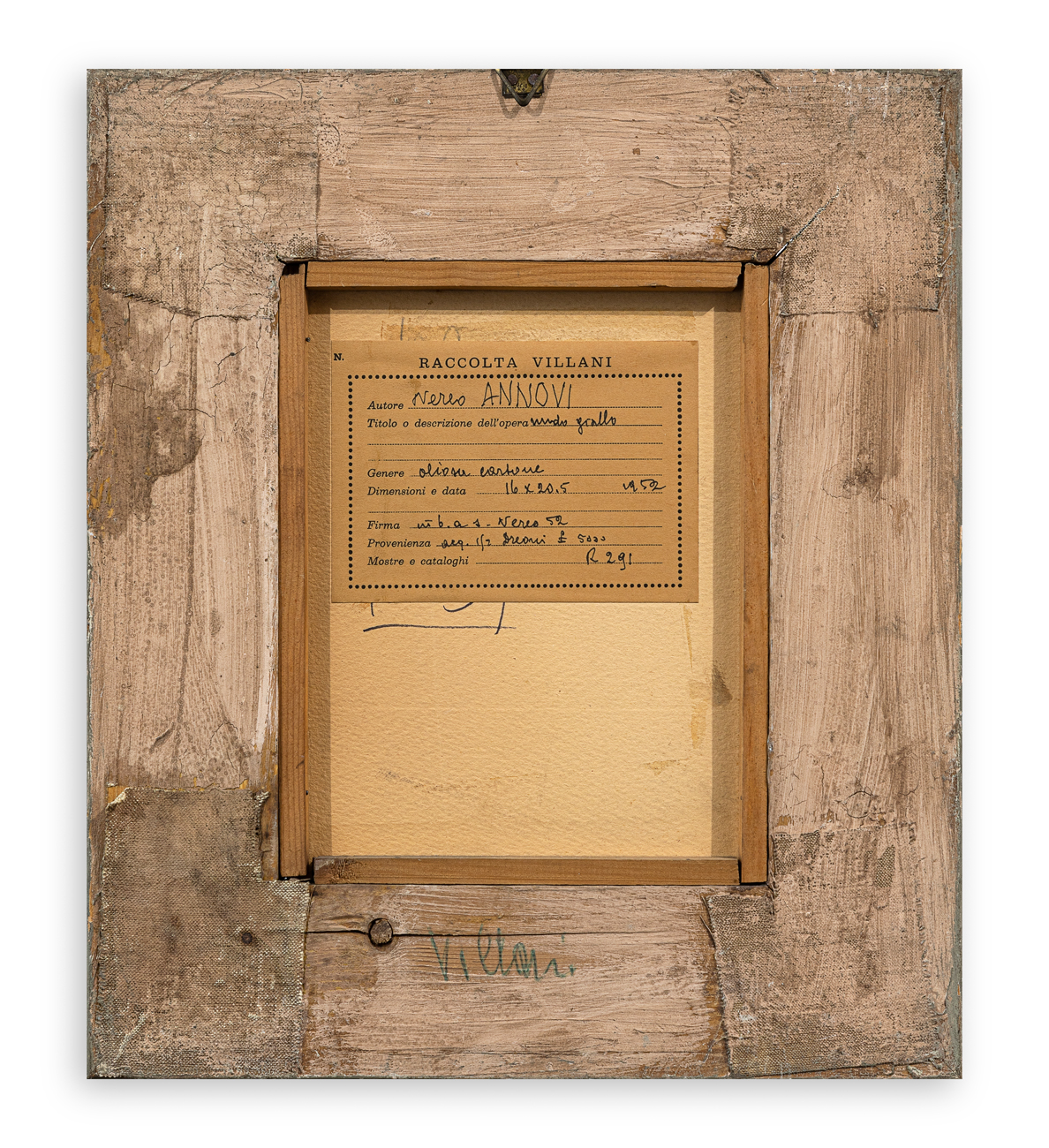 Etichetta della Raccolta Villani, recante caratteristiche tecniche dell'opera, al retro
