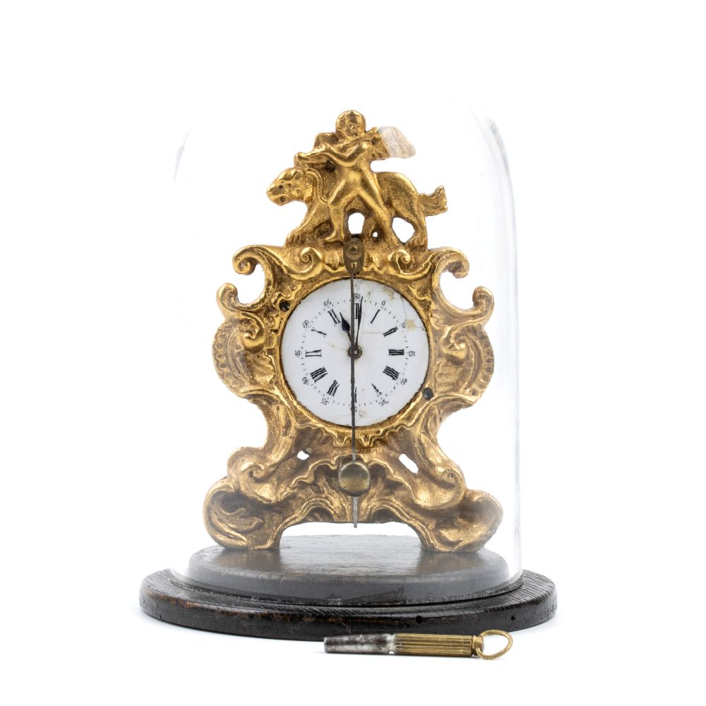 Poggiante su basamento ligneo e collocato entro campana di vetro coeva.