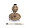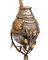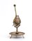 con corpo ovoidale decorato da motivi vegetali a rilievo e applicazioni dorate, sorretto da un elegante sostegno a forma di ramo con foglie. Il tutto poggia su un piattino circolare a tre piedini, con bordo finemente lavorato.