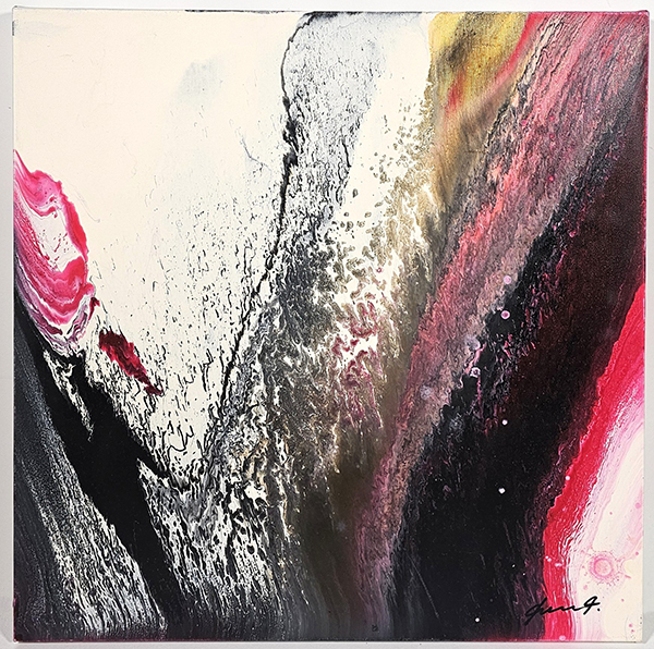 Pierluigi De Lutti “Il Fiume Bianco” Acrilico su tela, cm 50x50. Firma in basso a destra. Firma titolo e dimensioni al retro. Certificato di provenienza Allegrini arte. NO AUTENTICA