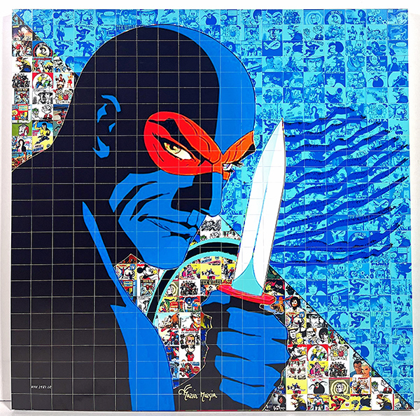 MURGIA MARIA, "Serie fumetti anni 70: Diabolik", fotomosaico digitale montato su pannelli kapafix e intagliato a mano, anno 2020, Autentica dell'artista su fotografia.Opera registrata presso l'archivio opere digitali Maria Murgia cm 50x50