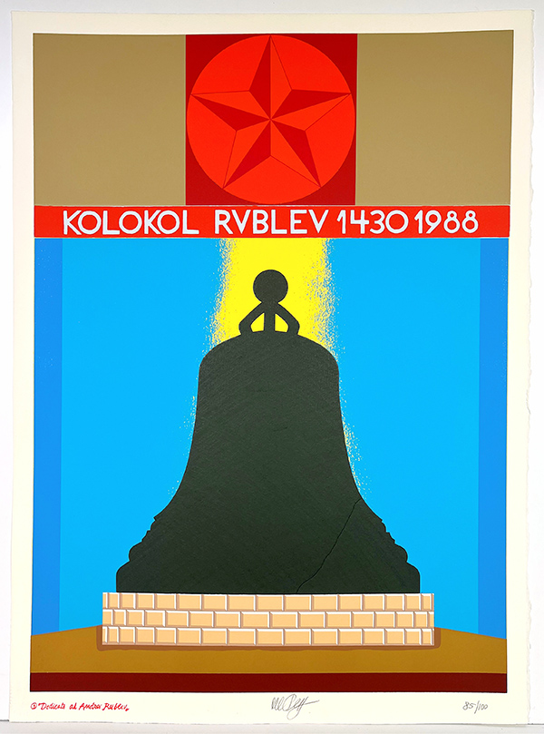 DEL PEZZO LUCIO "Dedicata ad Andrej Rublev"serigrafia su carta da acquerello pregiata "Arches" con elementi fustellati incollati a manoTitolo in basso a sinistra firma in basso al centro numerazione in basso a destra 56x76 cm