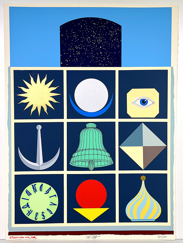 DEL PEZZO LUCIO"Russia come Rosso, Bello"serigrafia su carta da acquerello pregiata "Arches" con elementi fustellati incollati a manoTitolo in basso a sinistra firma in basso al centro numerazione in basso a destra cm 56x76