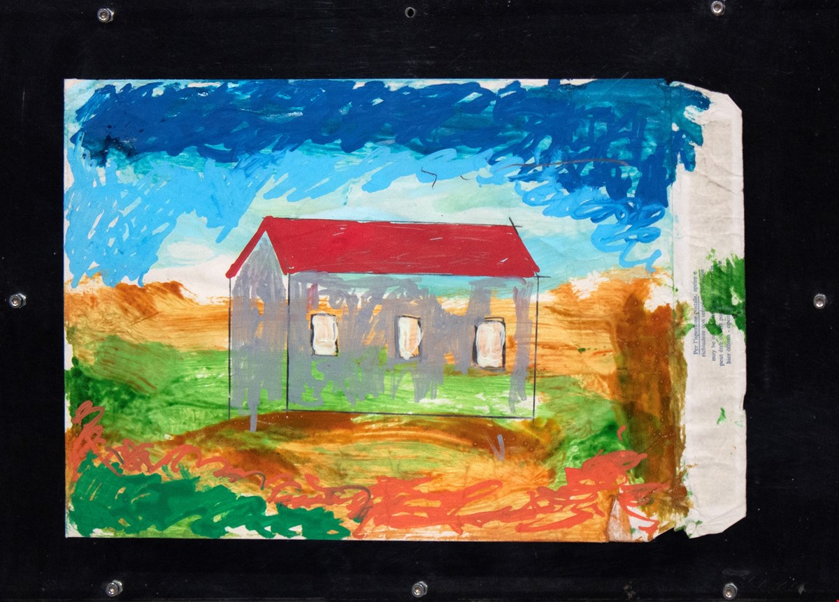 Mario Schifano, SENZA TITOLO, 1990/97, Tecnica mista su busta, 23x36.5 cm.