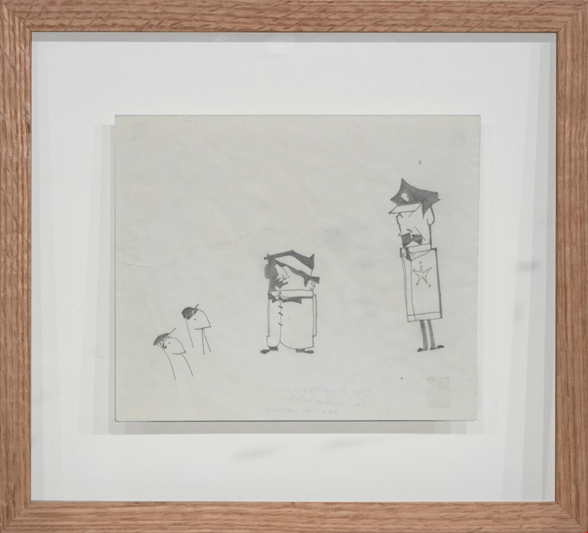 Pino Pascali, AL CAFONE E POLICEMAN, 1964/65, Grafite su Carta, 19x22,5 cm.