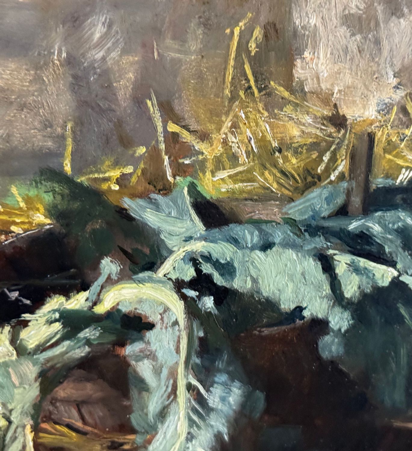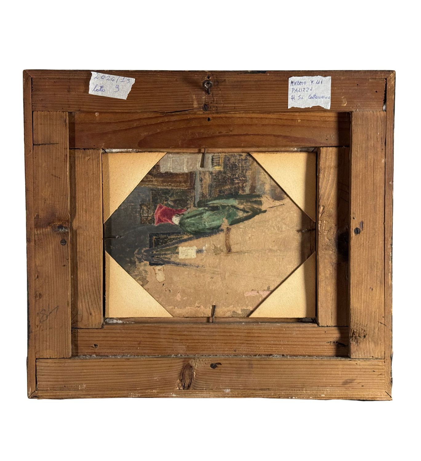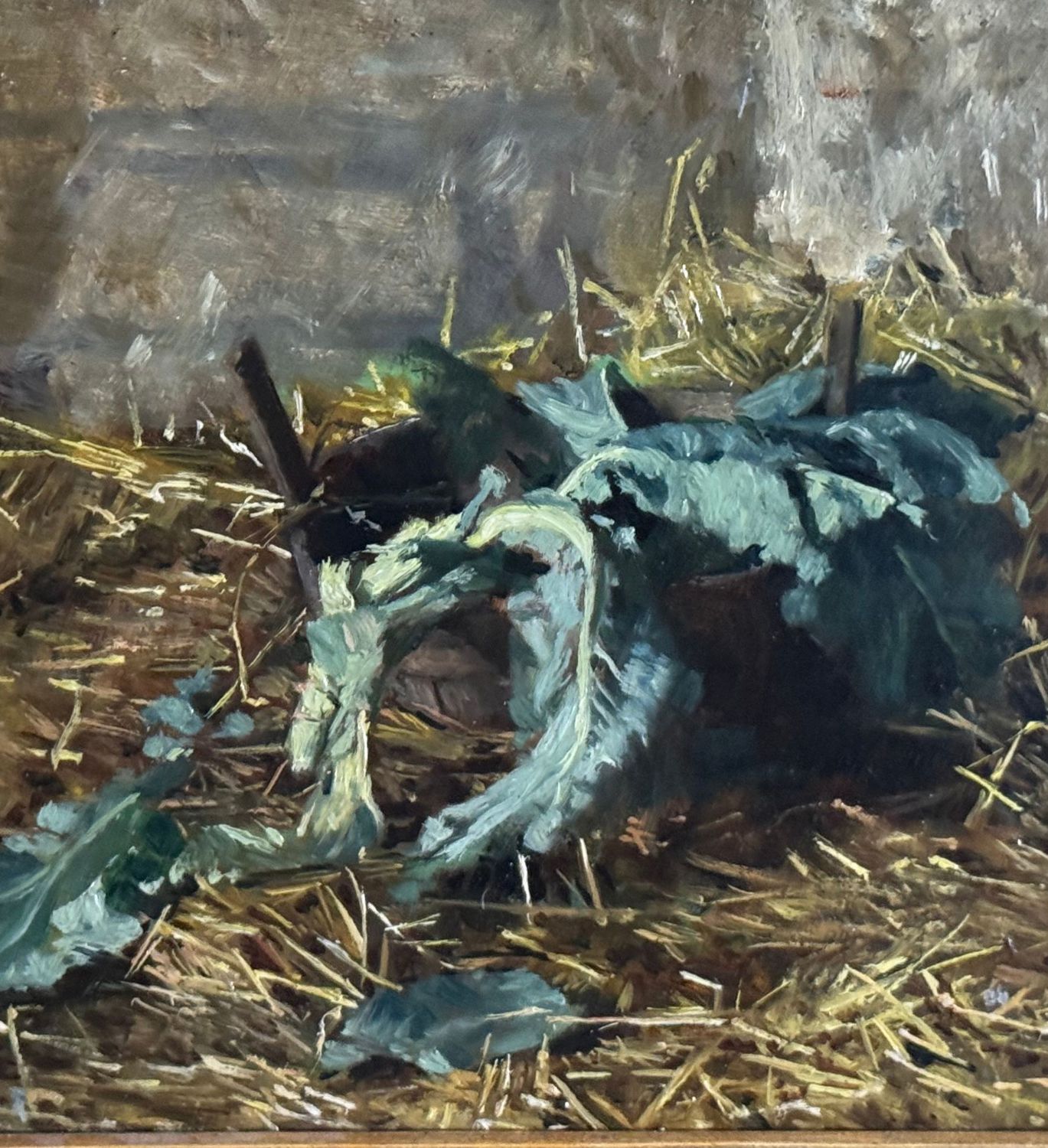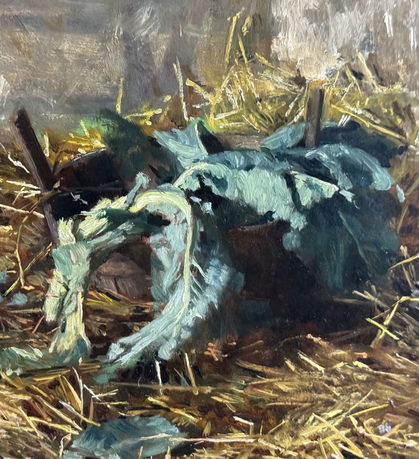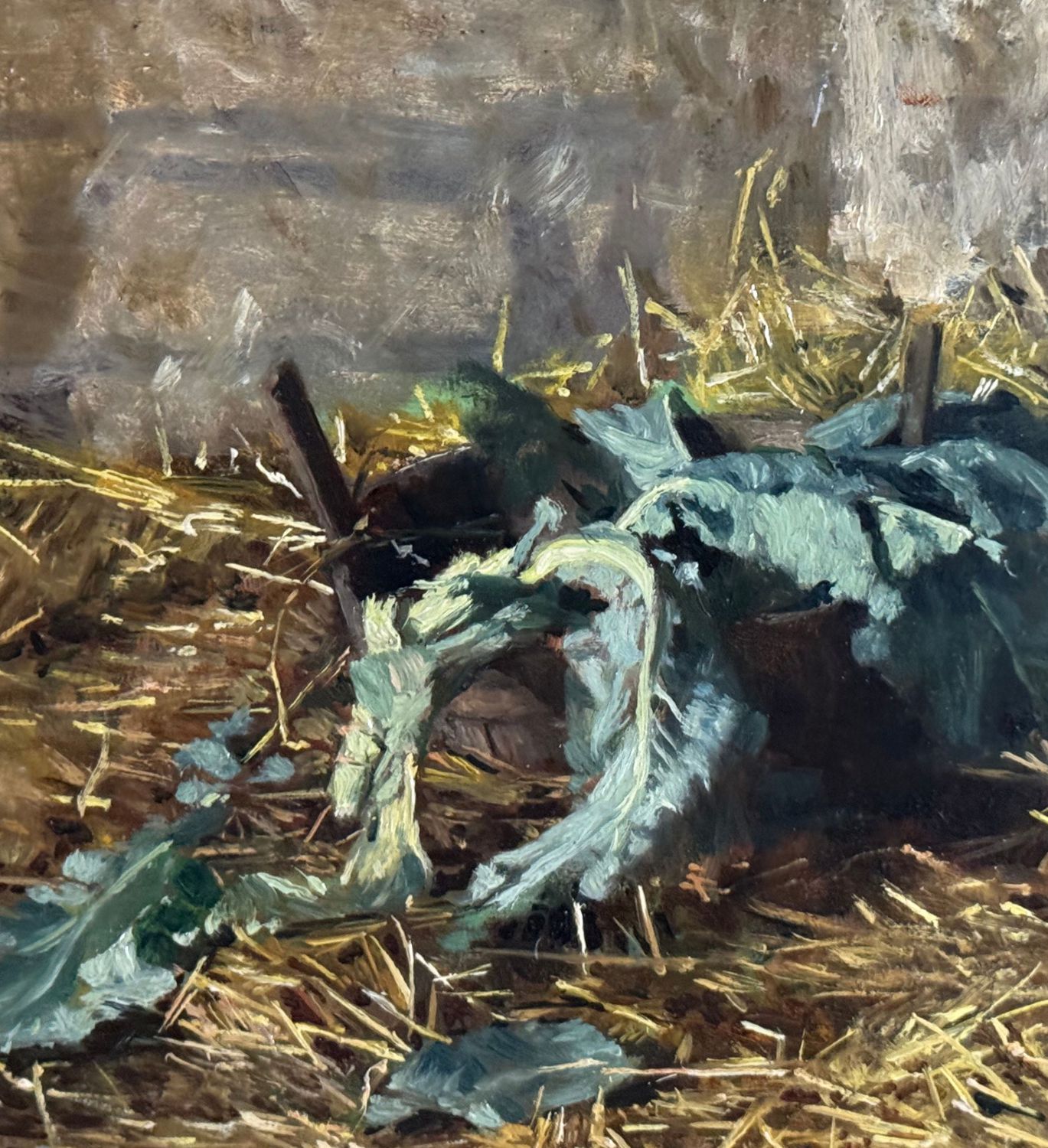 Dipinto olio su pannello, periodo XIX secolo, scuola Italiana, raffigurante Interno di stalla. Dimensioni compreso cornice: 43x38 cm. Dimensioni interno cornice: 25x21 cm. Ambito Fratelli Palizzi. Opera in buone condizioni.