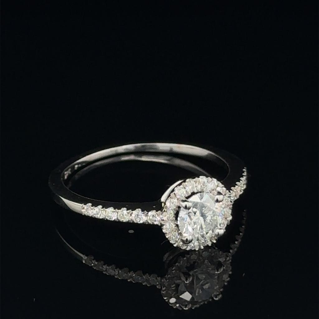 ANELLO IN ORO BIANCO 14K 1.88 GR CON DIAMANTI PER 0.50 CARATI COLORE D PUREZZA SI2 + DIAMANTI PER 0.25 CARATI COLORE D-F PUREZZA VS1-2 TAGLIA-7 CERTIFICATO AIG - RNG30205 - COMMISSIONE D’ASTA 25%