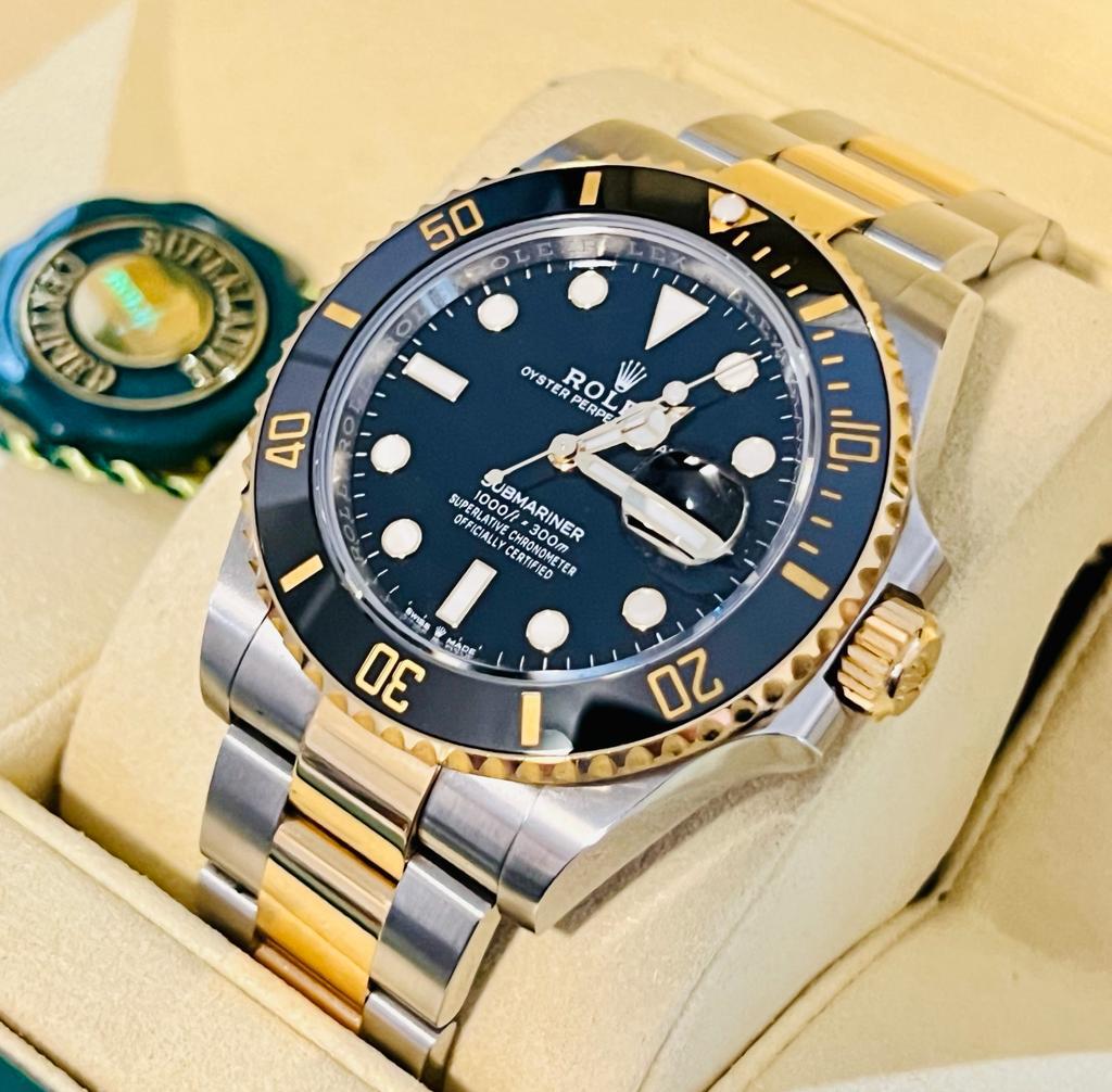 Marca Rolex Modello (Orologio) Submariner Date Numero di referenza 126613ln Carica Automatico Materiale della cassa Oro/Acciaio Materiale cinturino Oro/acciaio Anno di produzione 2020 anno approssimativo documenti originali, no box, la scatola viene utilizzata solo per fotografie non è in vendita Carica Automatico Cassa Materiale della cassa Oro/Acciaio Diametro 41 mm Impermeabile 30 ATM Materiale lunetta Oro giallo Vetro Vetro zaffiro Numeri sul quadrante Senza numeri Cinturino Materiale cinturino Oro/acciaio Colore cinturino Oro/acciaio Chiusura Déployante Materiale chiusura Oro/Acciaio - COMMISSIONE D’ASTA 25%