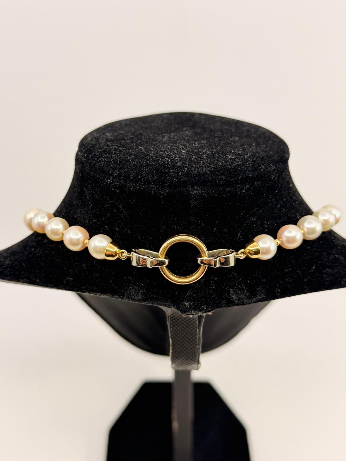 COLLANA CON CHIUSURA E COPRINODI IN ORO 18K (9,90 GR) CON PERLE GIAPPONESI, MISURE 71/2 - 8 -52 - P94 - COMMISSIONE D’ASTA 25%