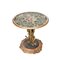 Tavolo da Centro rotondo in legno finemente intagliato e dorato, base a forma di roccia con fusto centrale con motivi naturalistici di fiori, foglie e rami che sorregge piano dipinto sottovetro e incorniciato con modanatura in legno dorato