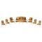 Legno intagliato e dorato, gambe scanalate e decorazioni classiche.
