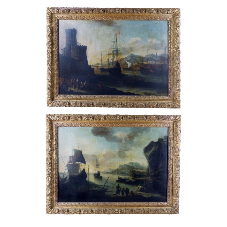 Coppia di paesaggi costieri sul Mediterraneo Fine XVII inizi XVIII secolo