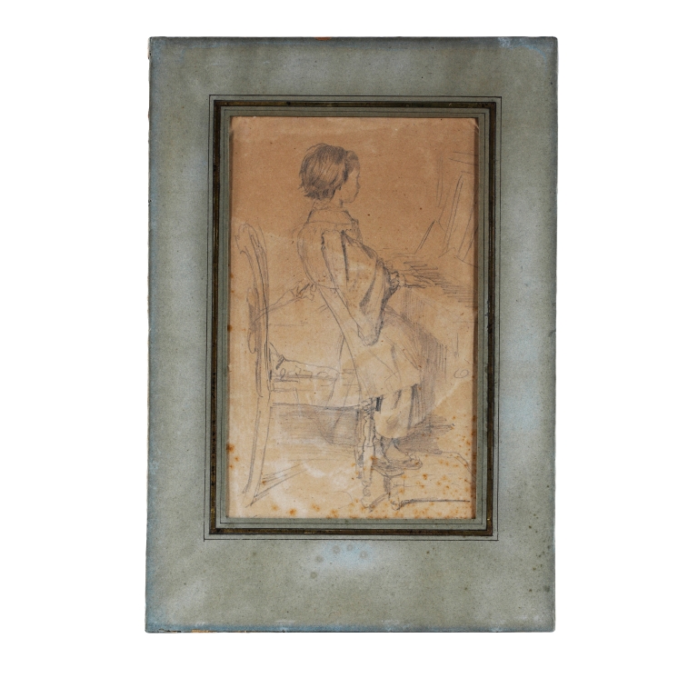 schizzo di getto a grafite mentre la cugina Giulia Bellelli, seduta impettita sulla