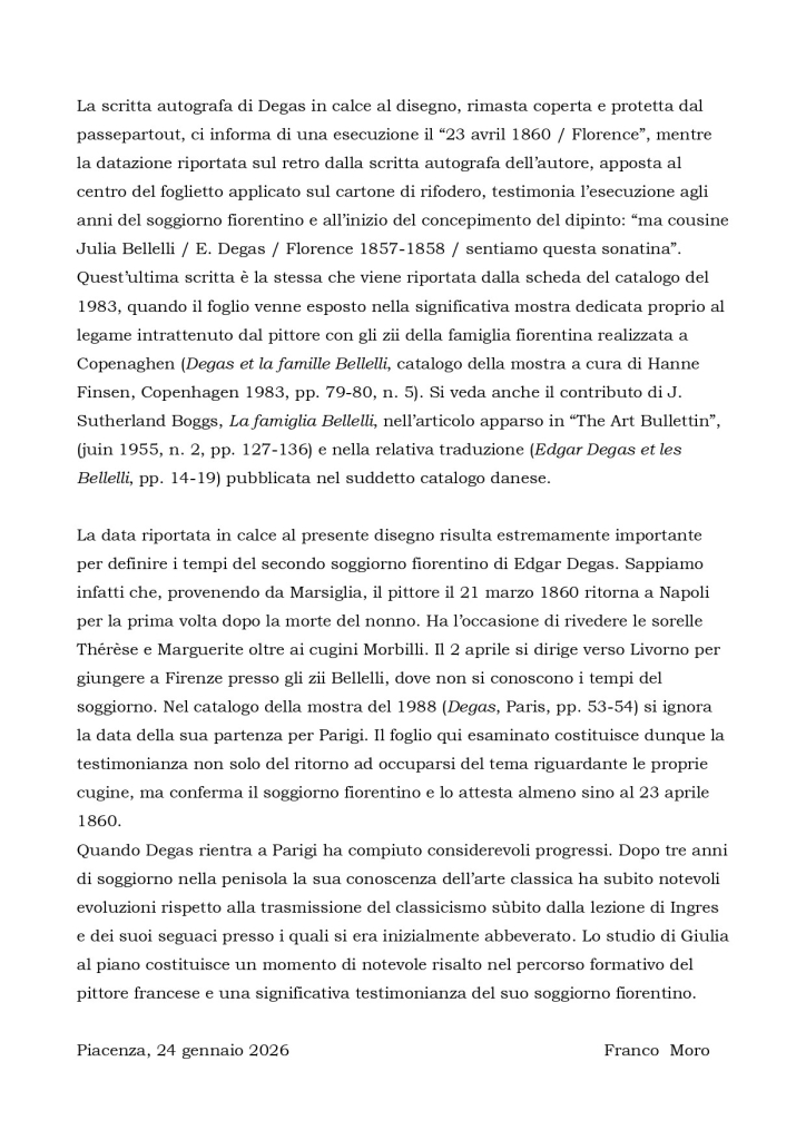 Julia Bellelli / E. Degas / Florence 1857-1858 / sentiamo questa sonatina”.