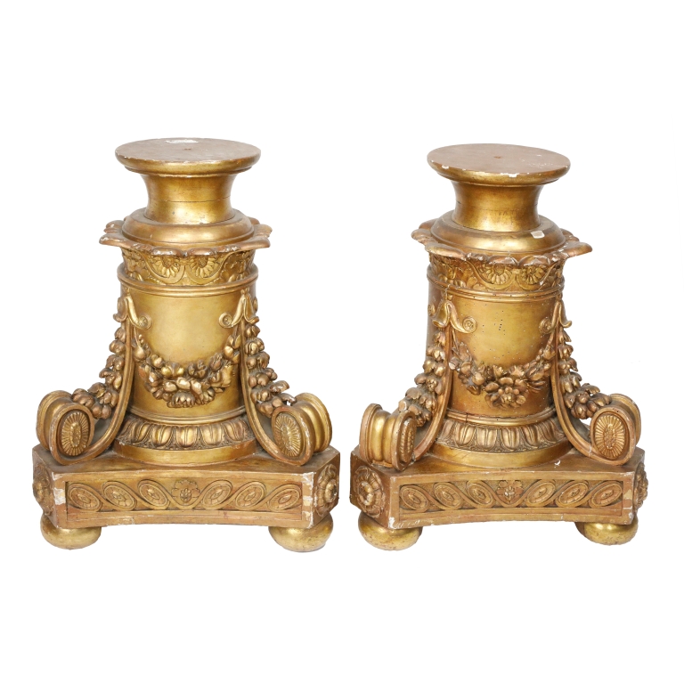 Basamenti dorati e intagliati con volute e ghirlande di fiori.