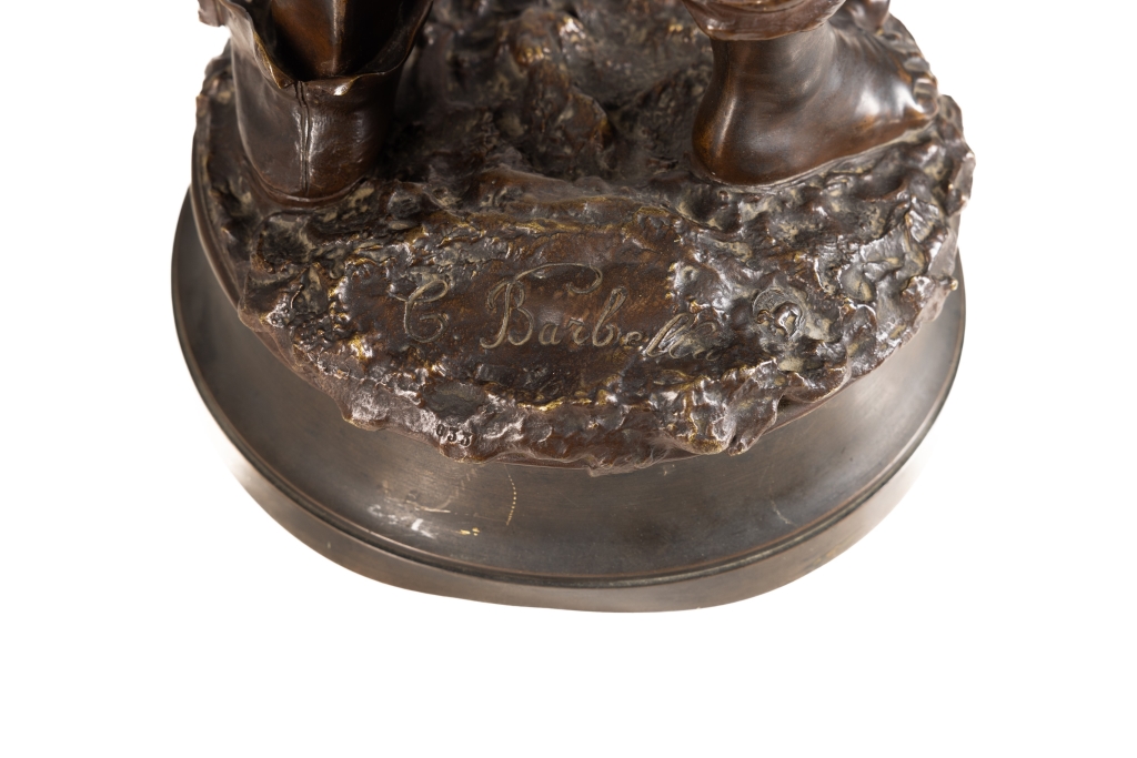 Fusione a cerapersa in bronzo patinato, firma " C. Barbella" marchio di fonderia "Paris AB".