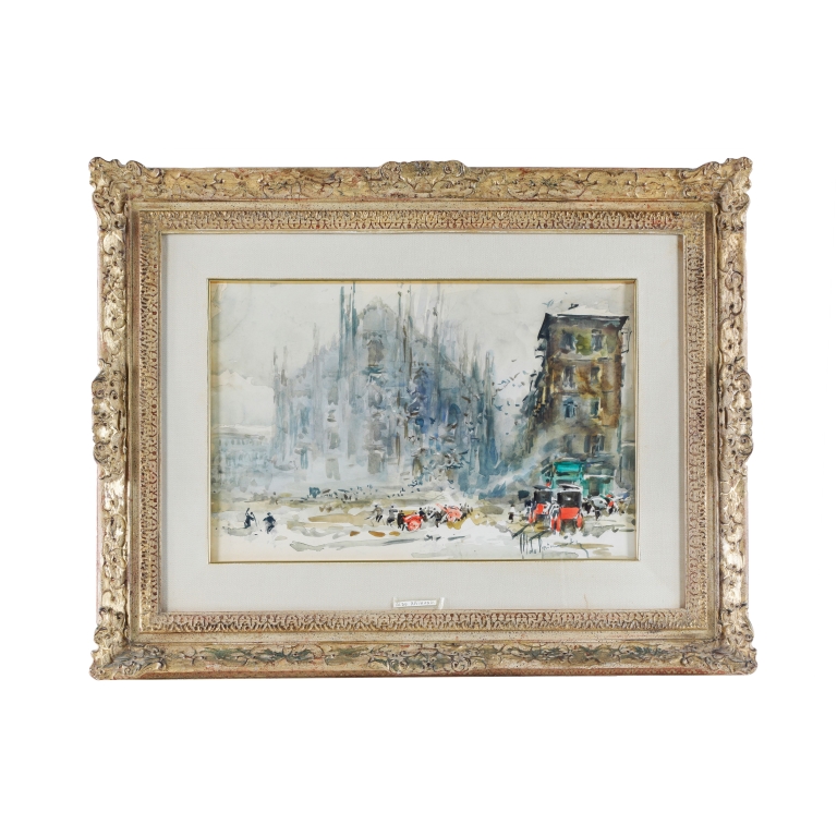 acquerello su cartone Cm 32.5 x 49,5 (cornice cm 56,8x74) Dipinto acquerello su cartone raffigurante "Duomo di Milano innevato"