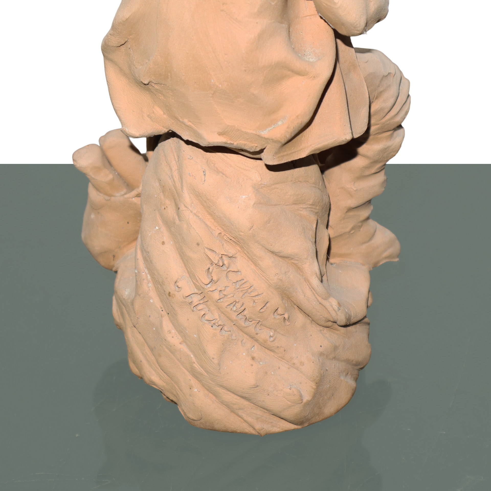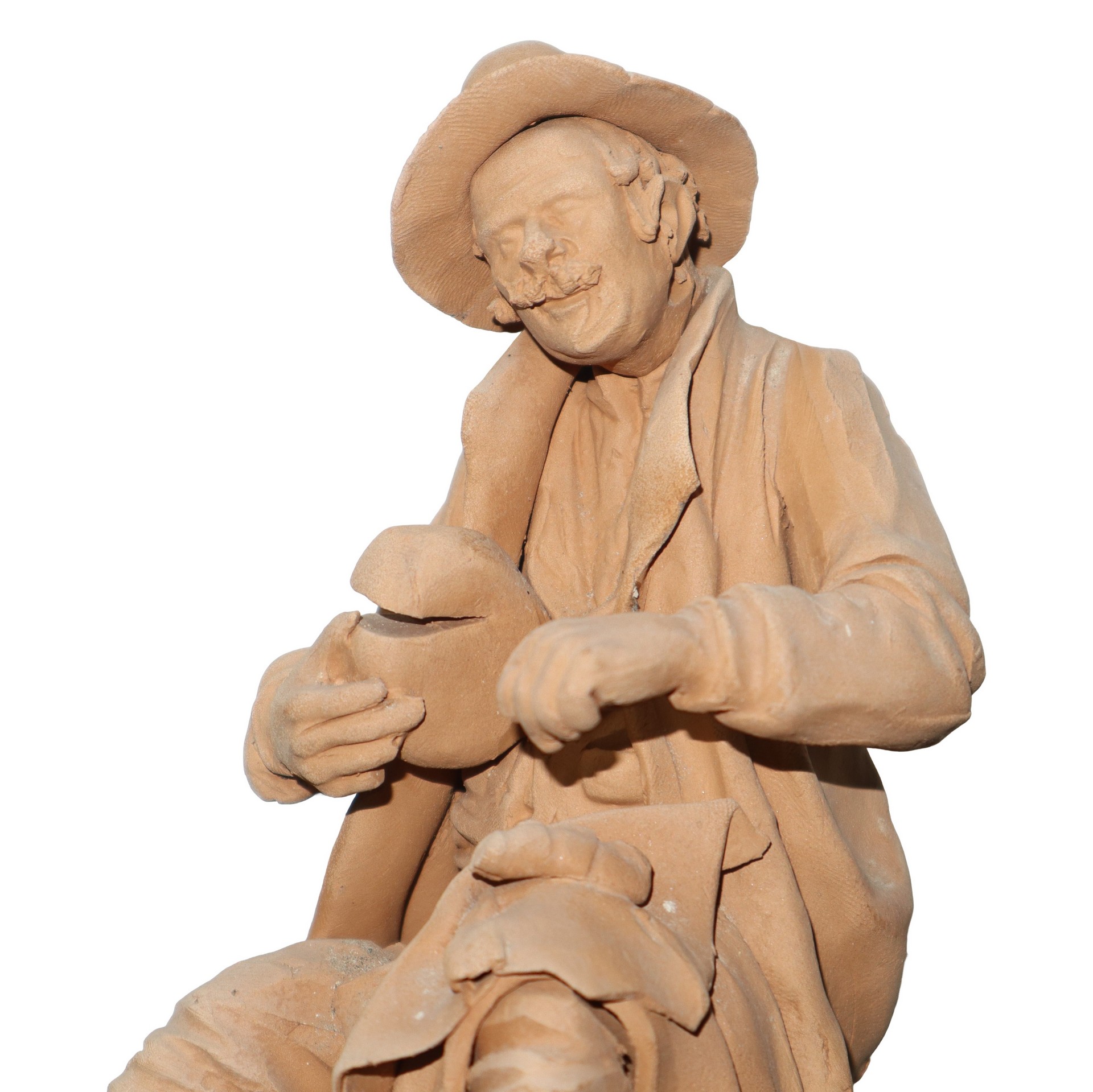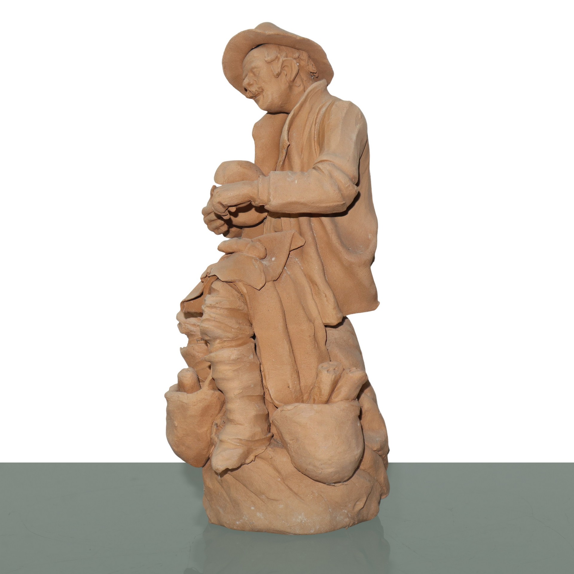 Ceramiche e presepi d'arte Scarlatella - Contadino che taglia il pane h cm 21 Firma della manifattura al retro