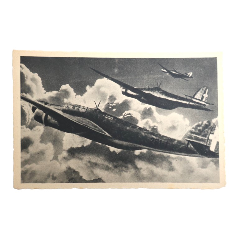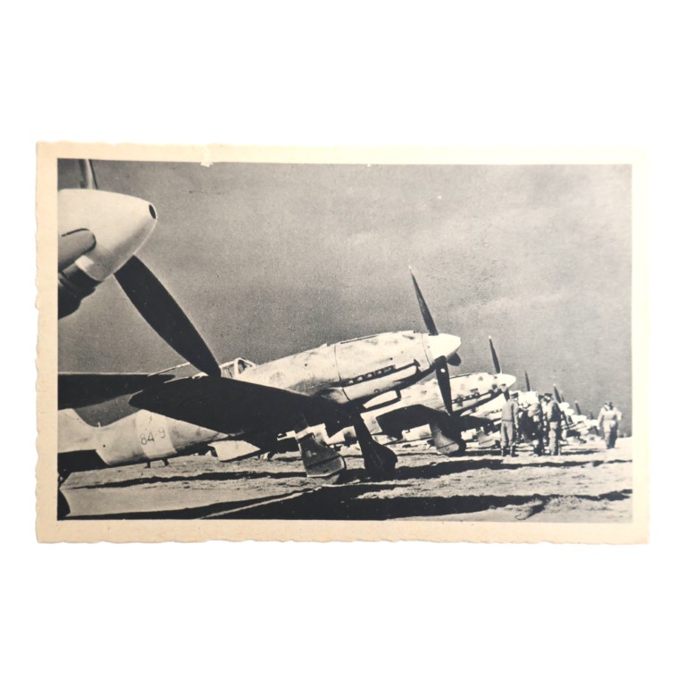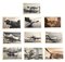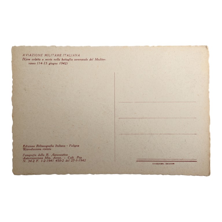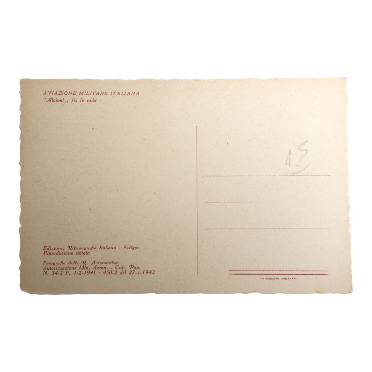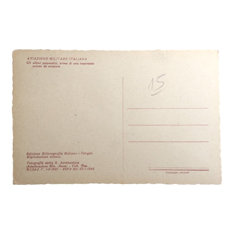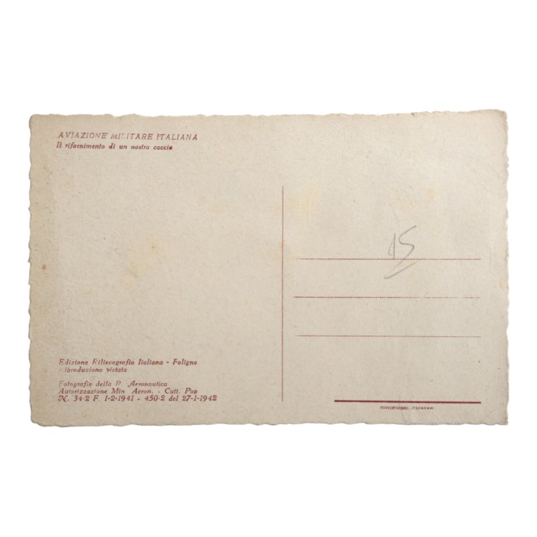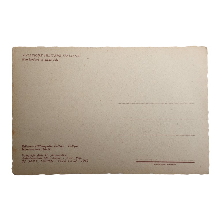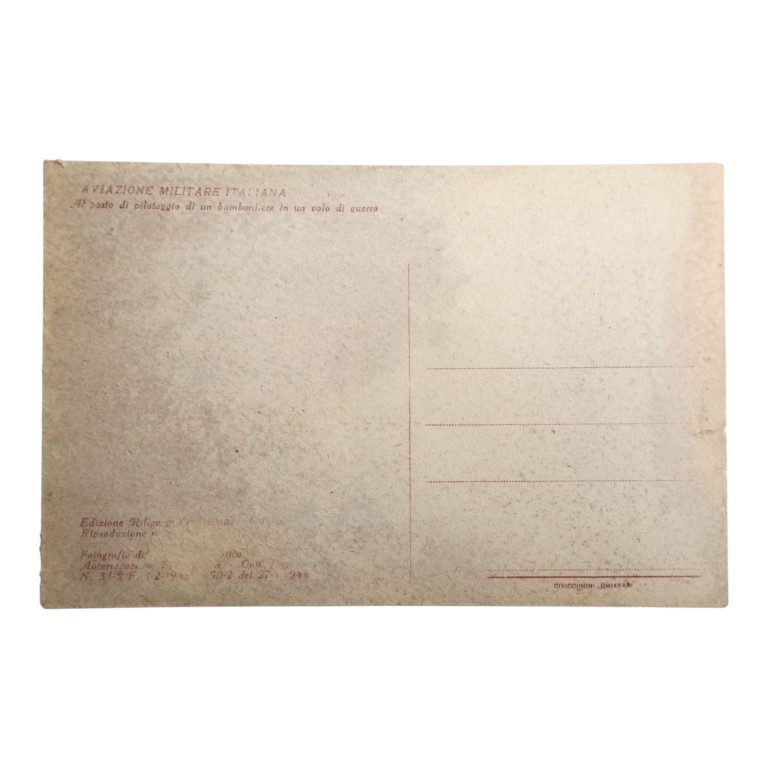 Raccolta di dieci cartoline in bianco e nero dedicate all'aeronautica militare, con immagini fotografiche che raffigurano velivoli e dettagli di apparecchi in volo o in posizione di riposo. Sul verso è presente la dicitura stampata 'AVIAZIONE MILITARE ITALIANA'. Alcune cartoline presentano lievi difetti conservativi (tracce d'uso, piccole abrasioni, segni del tempo).