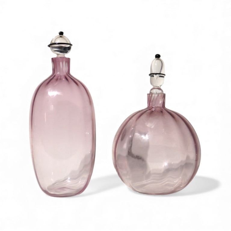 Coppia di bottiglie da tavola in vetro violetto