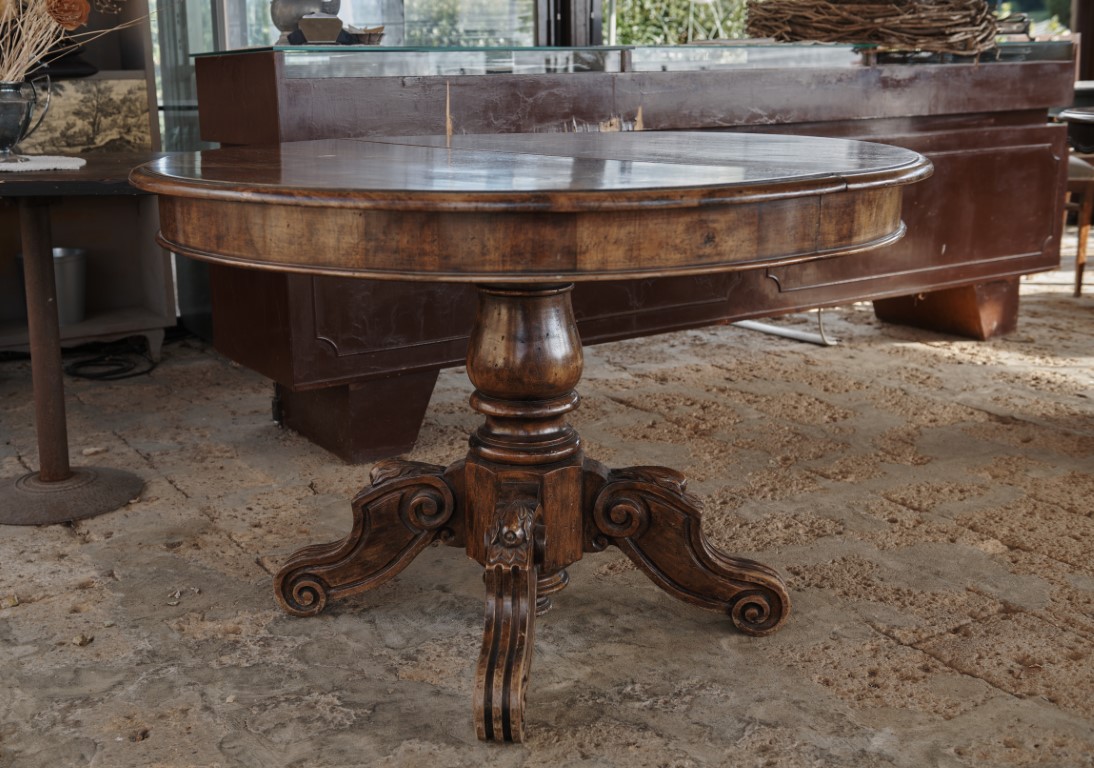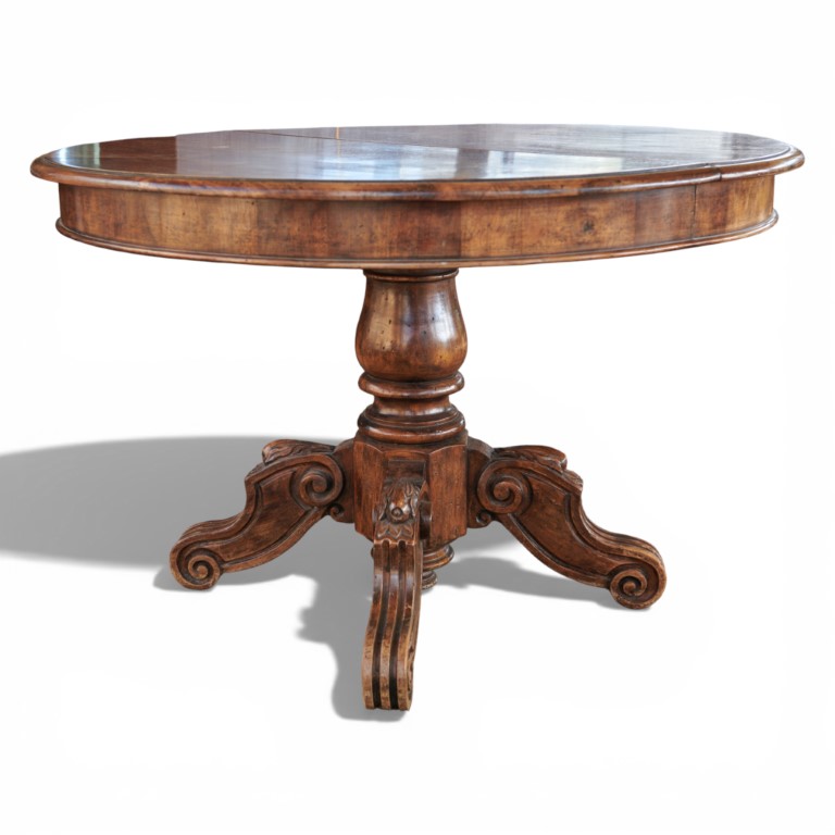 Tavolo rotondo da pranzo allungabile in noce