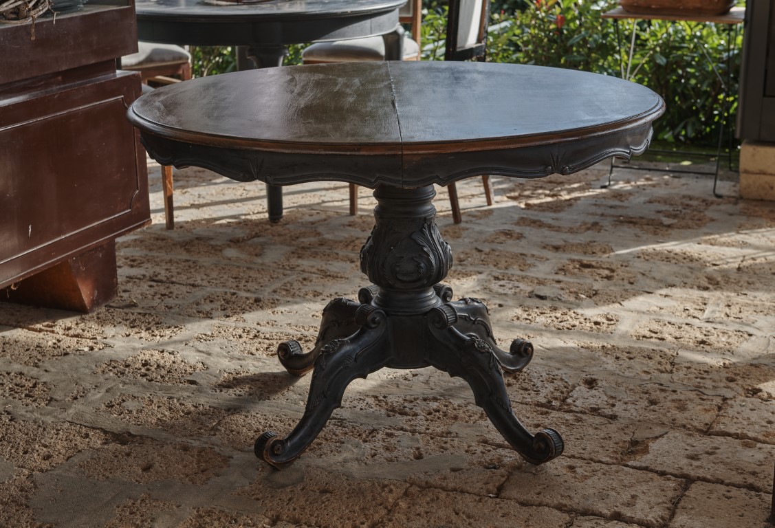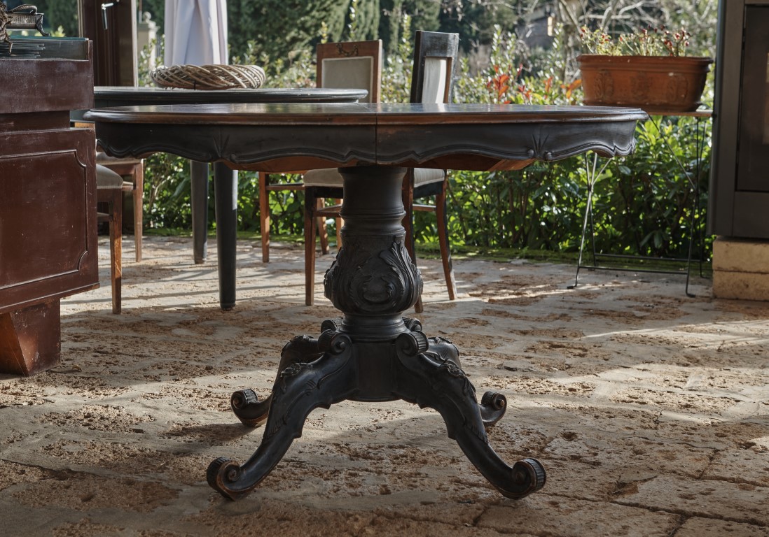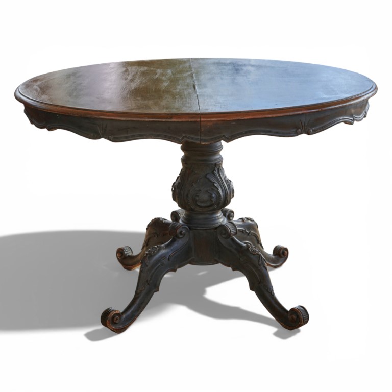 Tavolo rotondo da pranzo allungabile in noce in parte verniciato nero