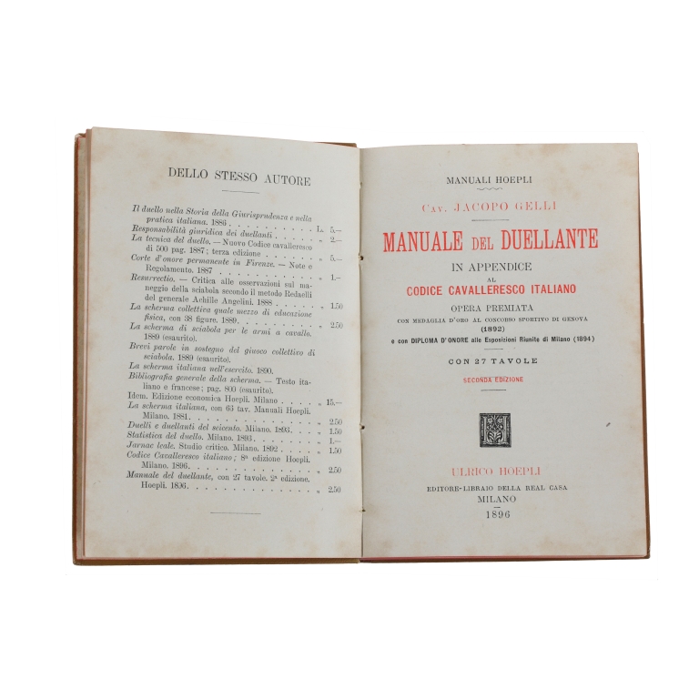 GELLI, Jacopo. Codice Cavalleresco Italiano & Manuale del Duellante.