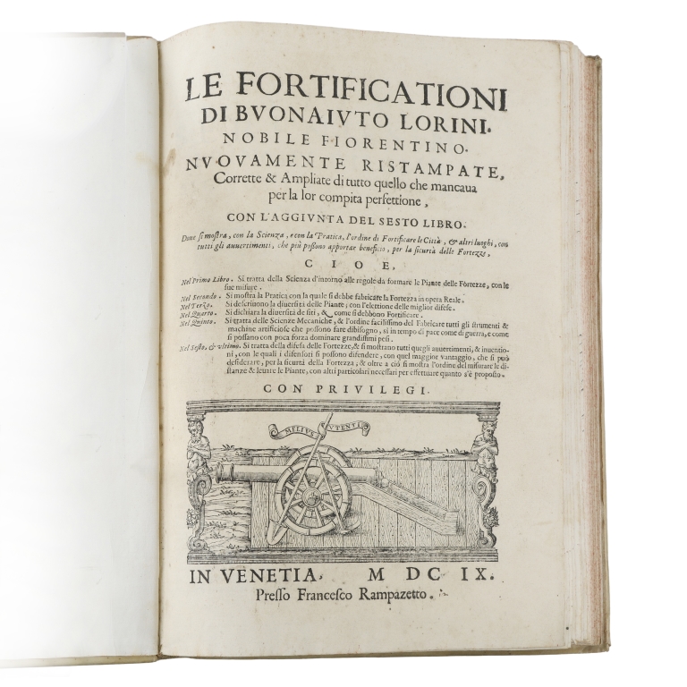 Le Fortificazioni di Buonaiuto Lorini Nobile Fiorentino Nuovamente Ristampate Corrette & Ampliate di tutto quello che mancava per la loro perfezione, Con l’aggiunta del sesto Libro