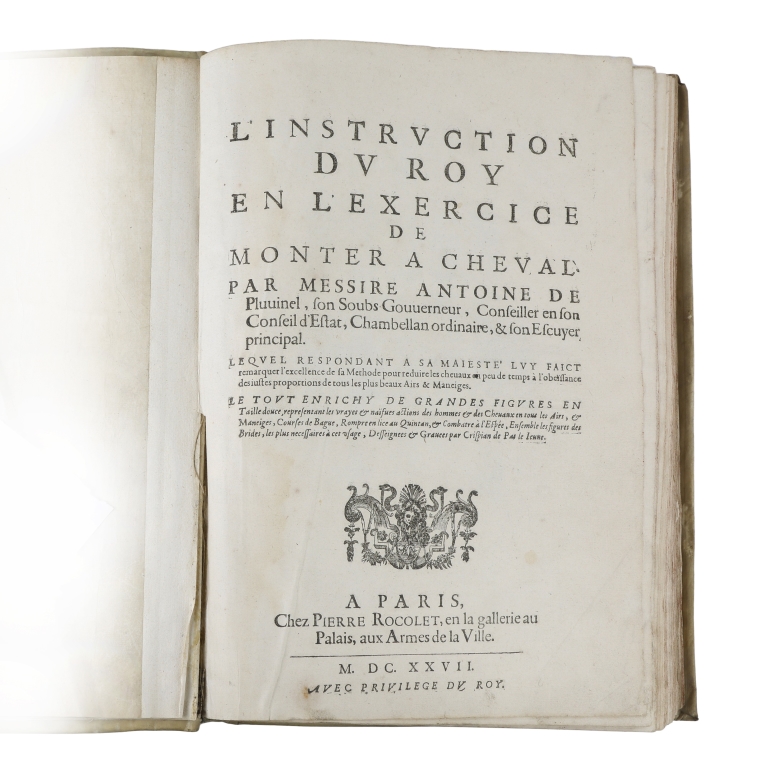 L’instruction du Roy en l’exercice de Monter a Cheval par Messire Antoine de Pluvinel son soubs Gouverneur, Conseiller en son Conseil d’Estat Chambellan Ordinair & son Escuyer principal
