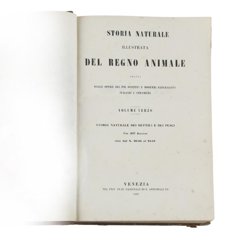 AUTORI VARI. Storia Naturale Illustrata del Regno Animale. Tratta dalle opere dei più distinti e moderni naturalisti italiani e stranieri. Venezia, Presso Giuseppe Antonelli, 1857.