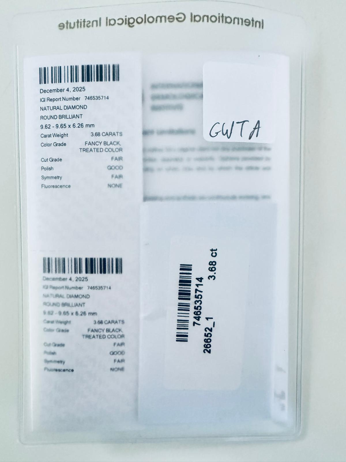 Lotto 387 | DIAMANTE NATURAL POLISHED FANCY BLACK 3,68 CT – BD02