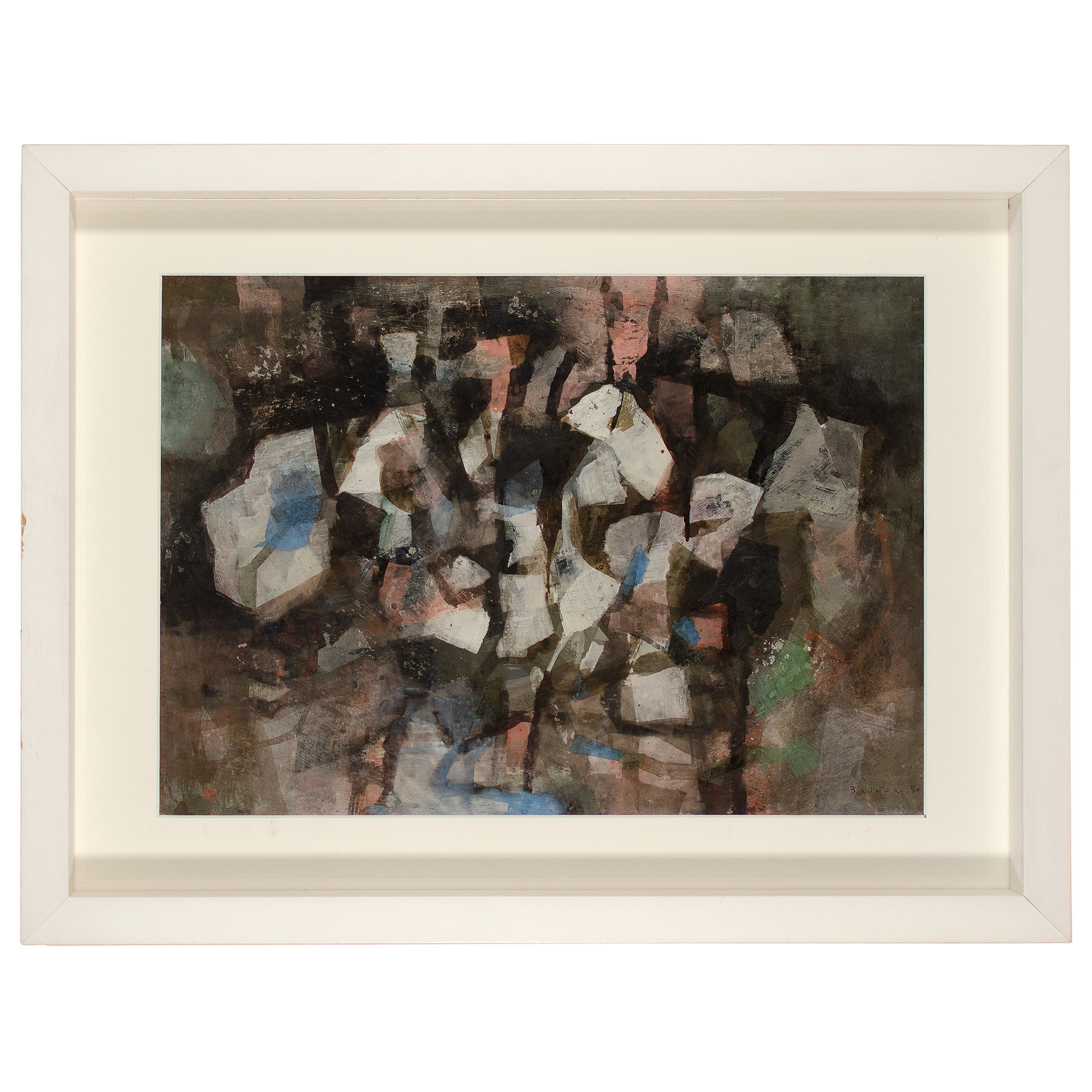Firmato, datato e titolato al verso: Nero e rosa 1970 Brunori