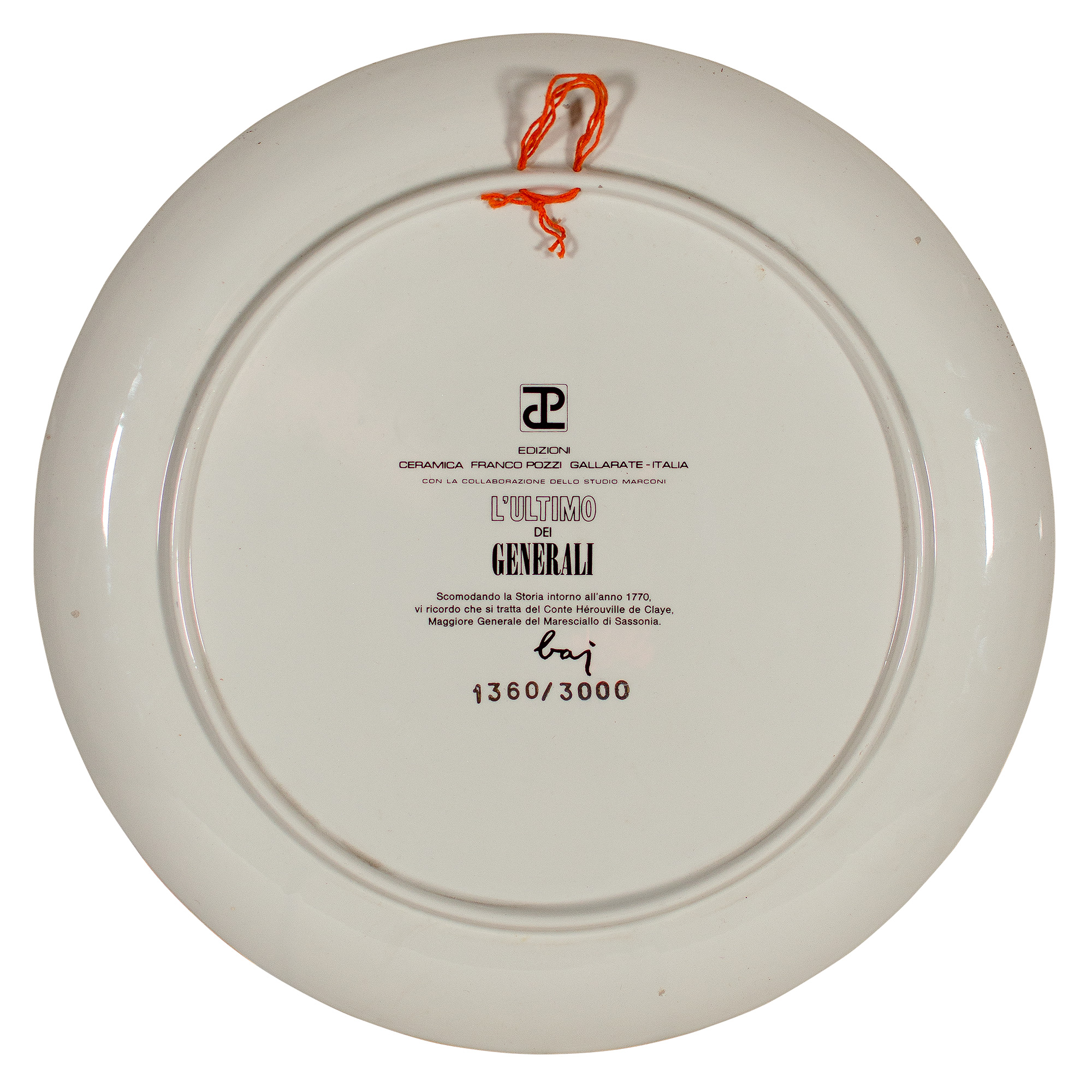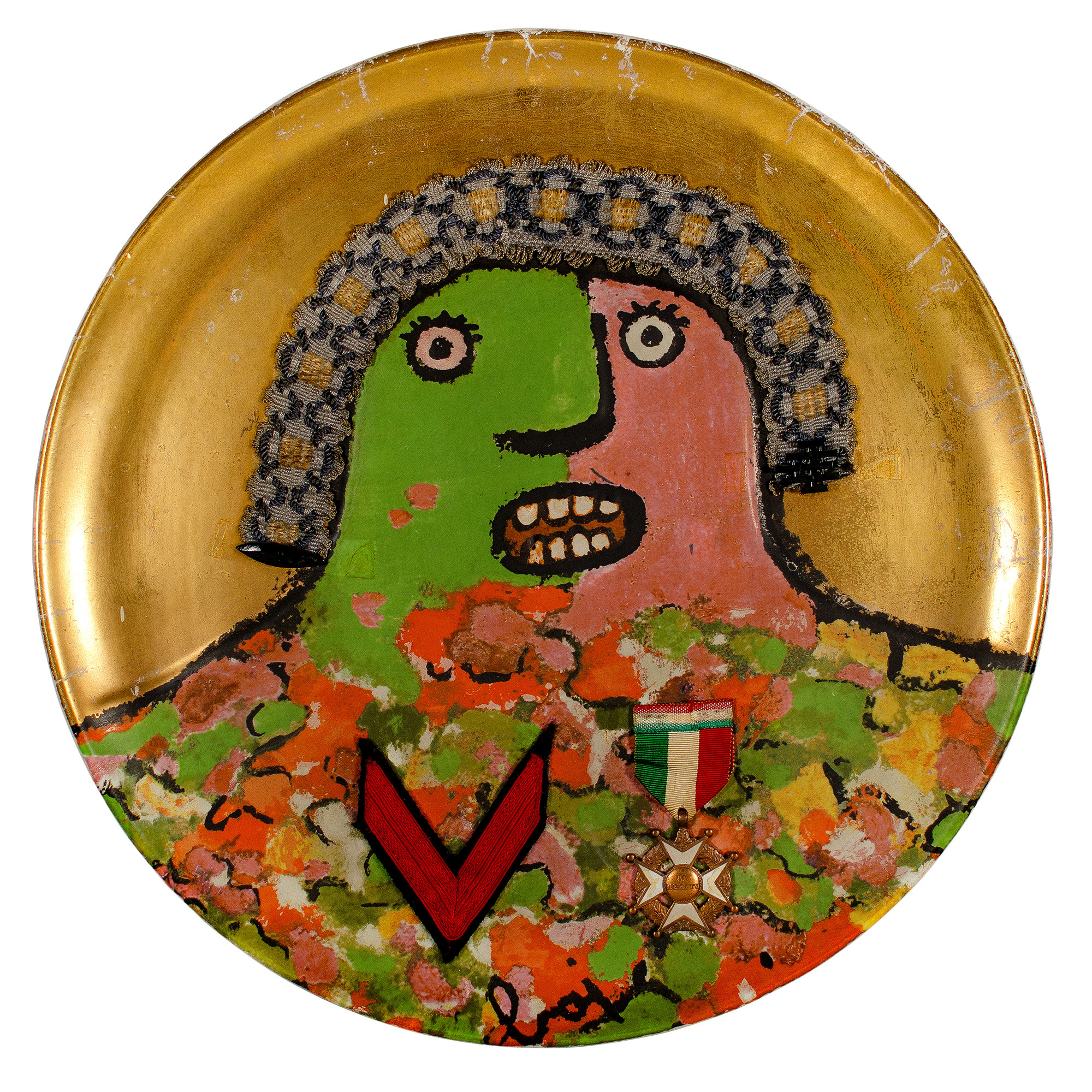 ceramica policroma e collage, diametro cm 30, ed. 1360/3000, facente parte di un’edizione di 3000 esemplari, Ceramiche Franco Pozzi, Gallarate. Firmato e numerato al verso. In custodia di cartone originale.