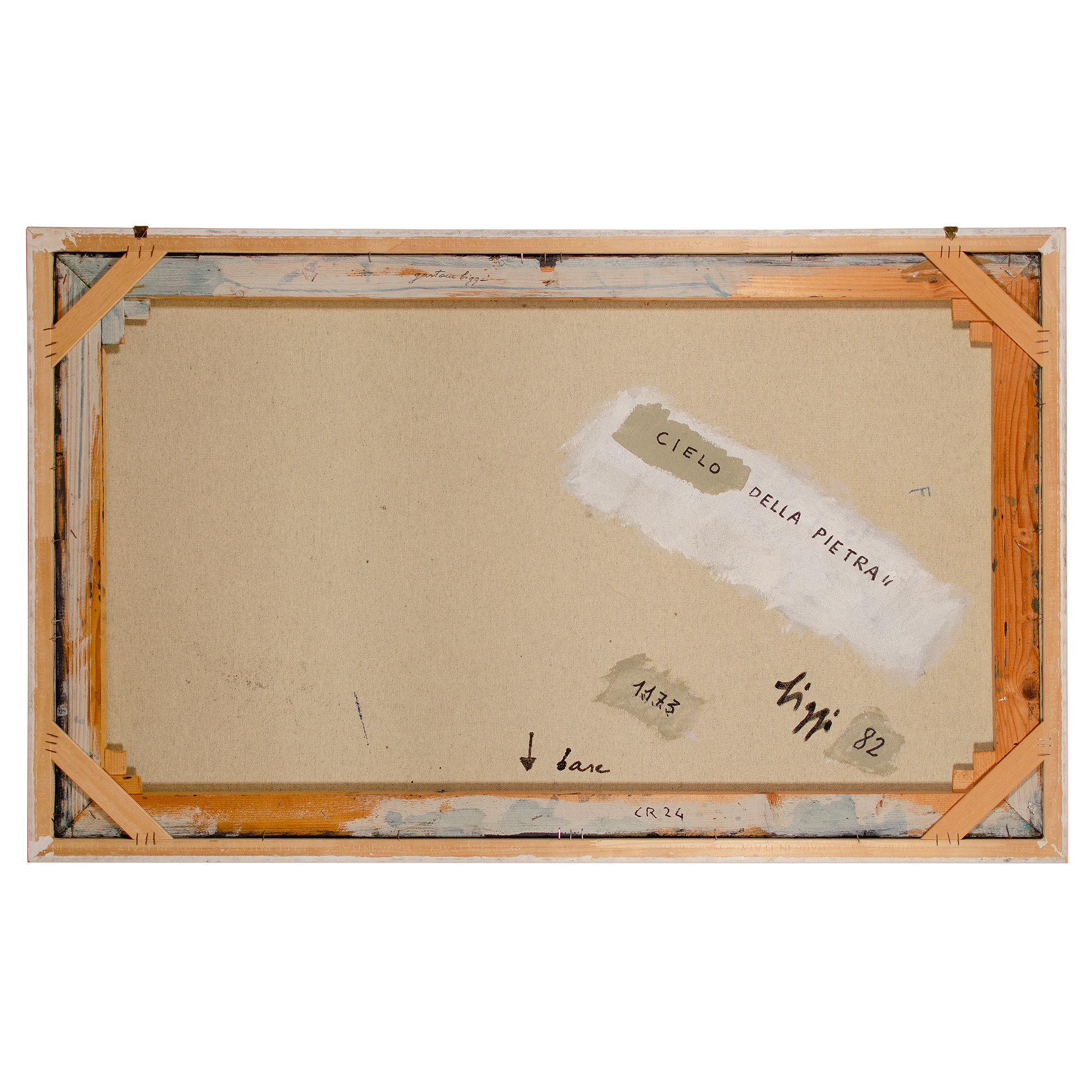 Firmato, datato e titolato al verso sulla tela: Cielo della pietra biggi 82