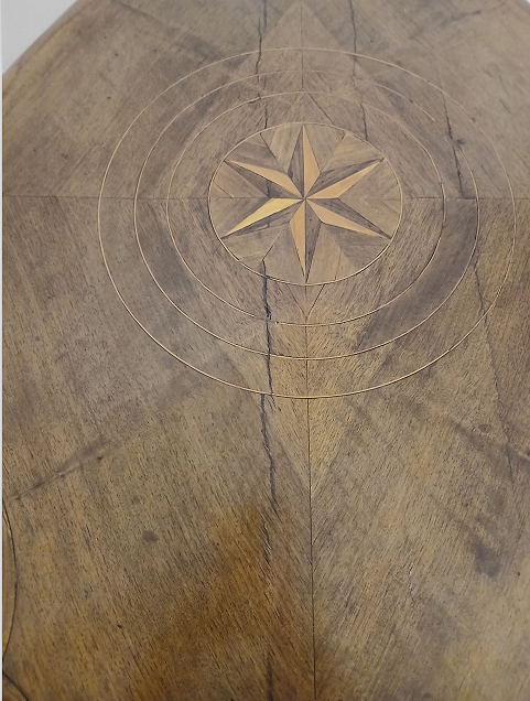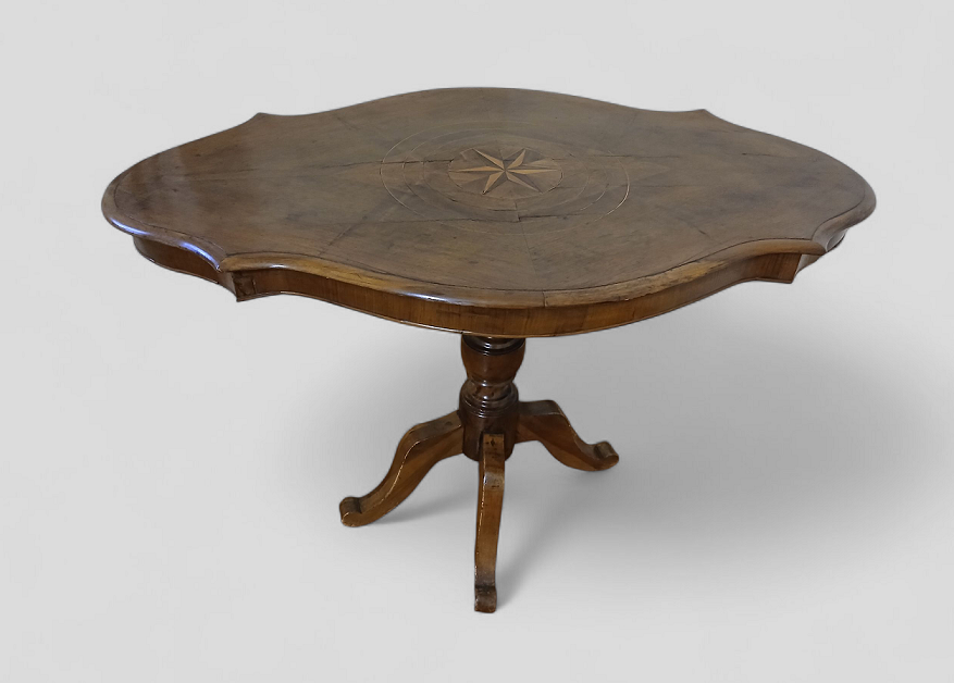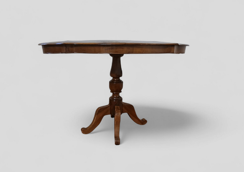 TAVOLO A BISCOTTO IN NOCE CON INTARSIO AL PIANO XIX SEC. CM.120X69 H.CM.76...