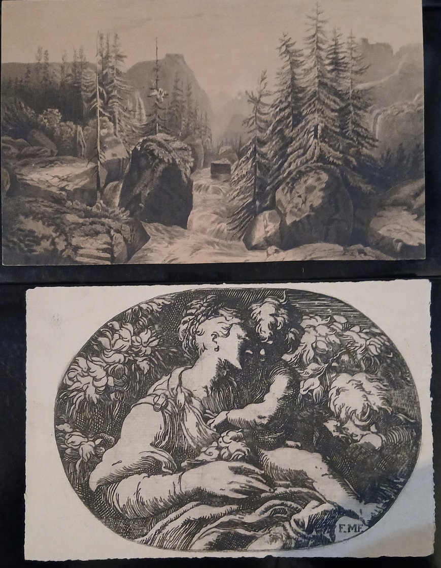 MATERNITA' E PAESAGGIO - INCISIONE E RETOUCHE' SENZA CORNICI MAX CM.17X27