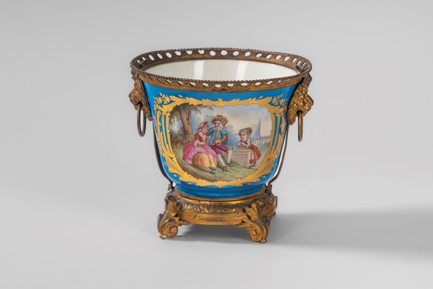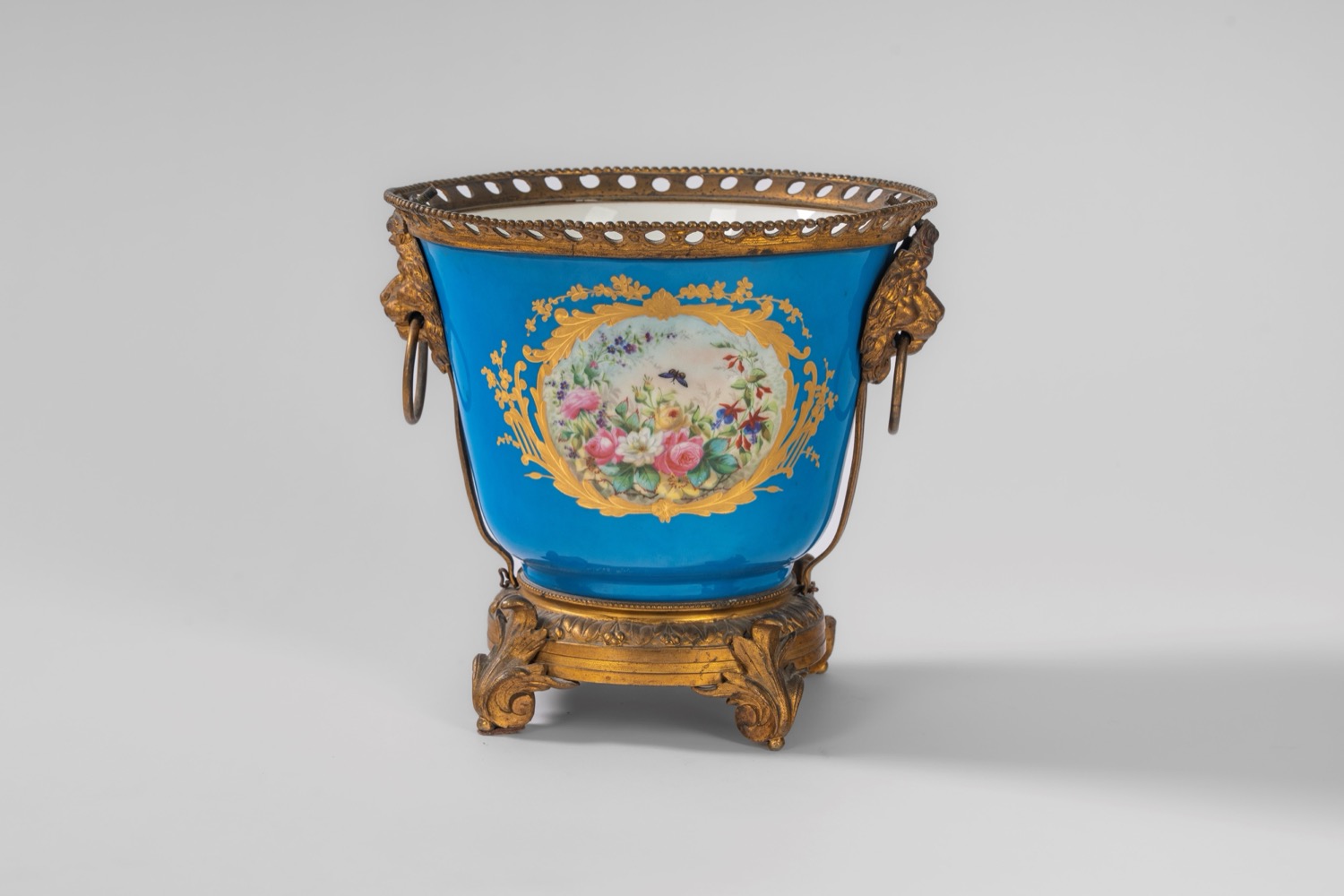 Cachepot in porcellana montata in bronzo dorato. Secolo XIX