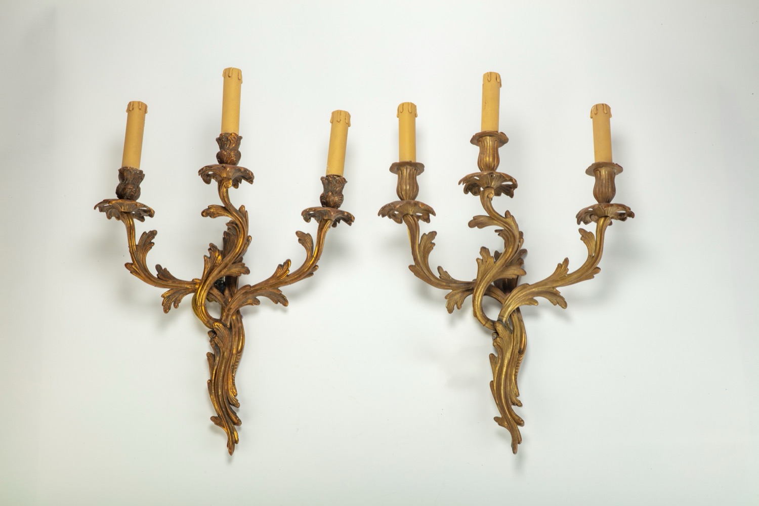 Lotto 42 | Coppia di applique a tre luci con bracci a volute fogliacee, XX secolo