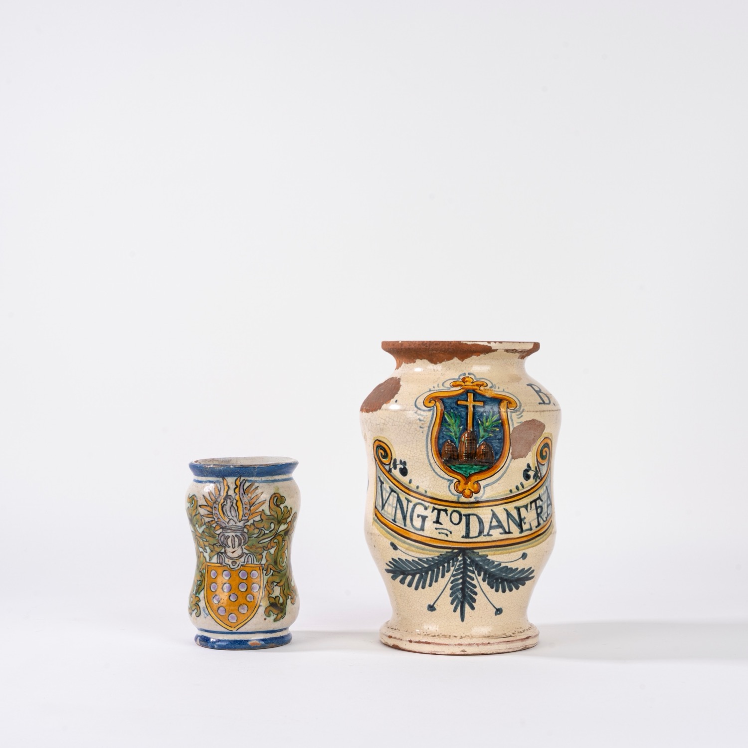 Due albarelli in maiolica policroma