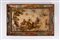 Vassoio rettangolare in legno laccato e decorato ad arte povera, con scena di caccia, Venezia secolo XVIII