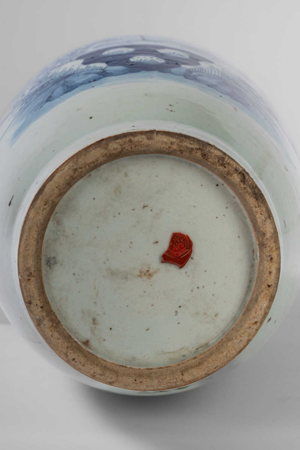 Grande vaso in porcellana blu e bianco con pavone e fiori, anse sagomate, Cina, Dinastia Qing, XIX secolo